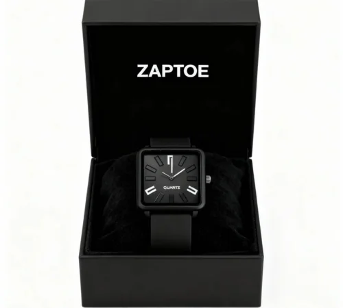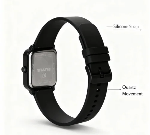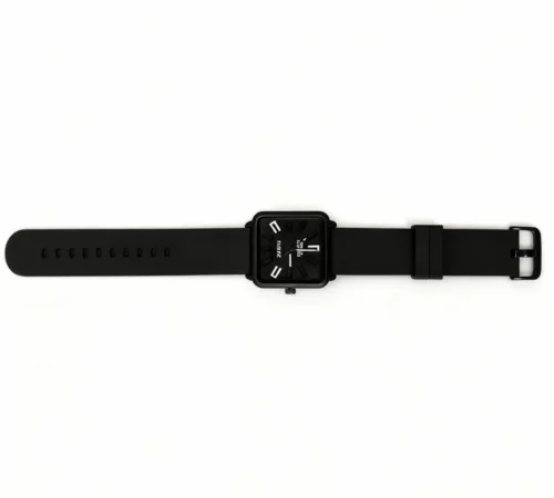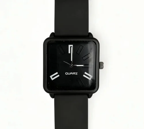 Stylish Black Square Dial Watch with Black Silicone Strap